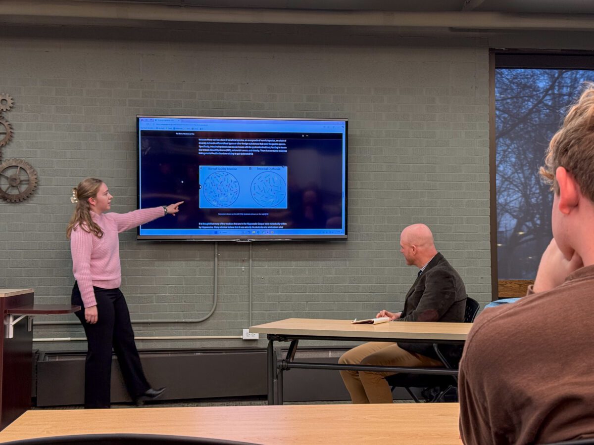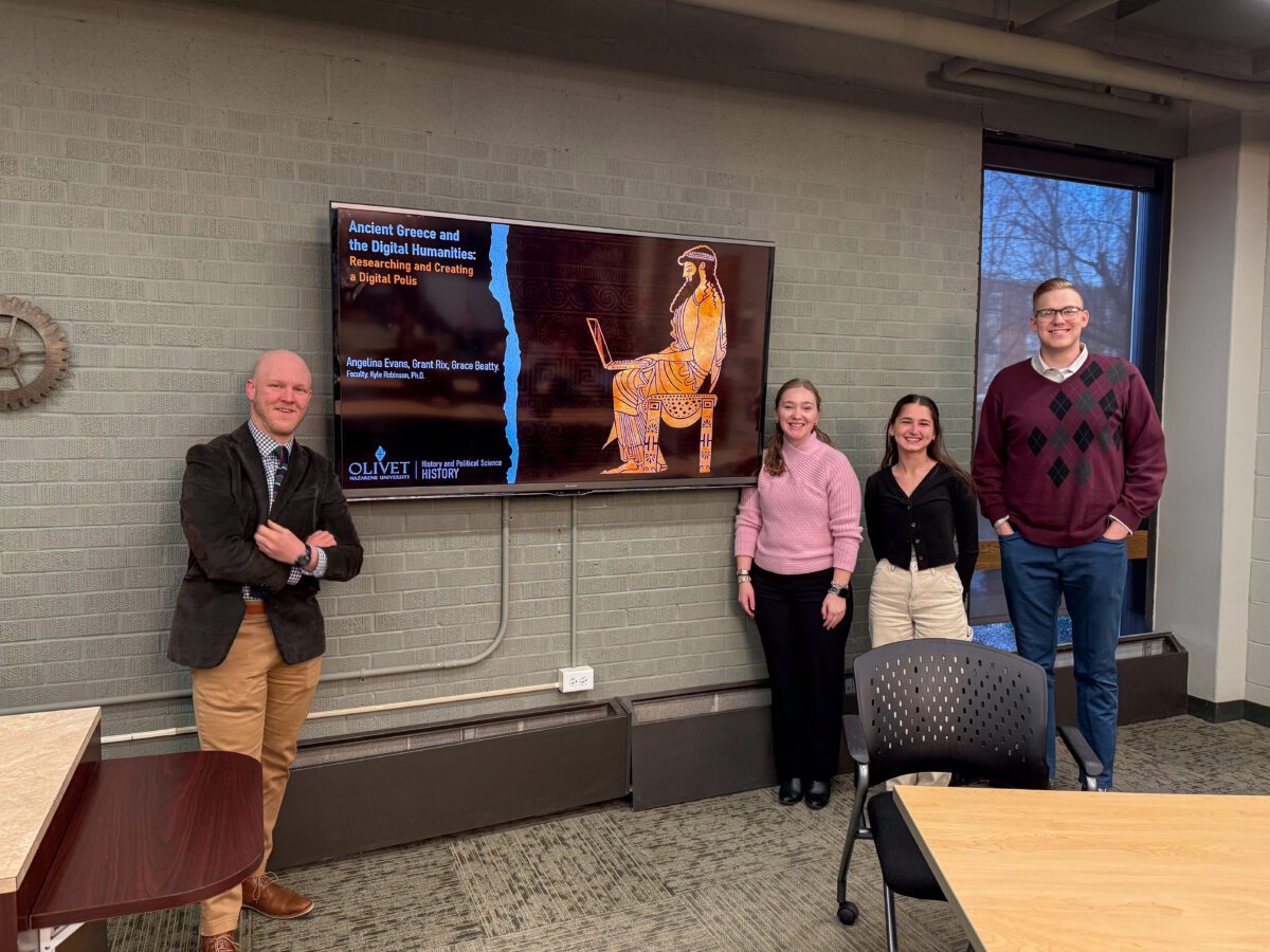 This year’s Scholar Week featured 32 presentations by 65 student and faculty presenters and drew more than 800 student and faculty attendees over a five-day span. Highlights included a presentation by Dr. Nicole Vander Schaaf and Honors Program student Lucy Martinson ’25 outlining their work in Papua New Guinea testing for HPV; a digital humanities project on ancient Greece supervised by Dr. Kyle Robinson; and the release party for the 2025 issue of TYGR, Olivet’s literary and arts magazine. Scholar Week also featured the work of Olivet’s Honors Program students, who showcased the final products of their two-year mentored capstone research projects.