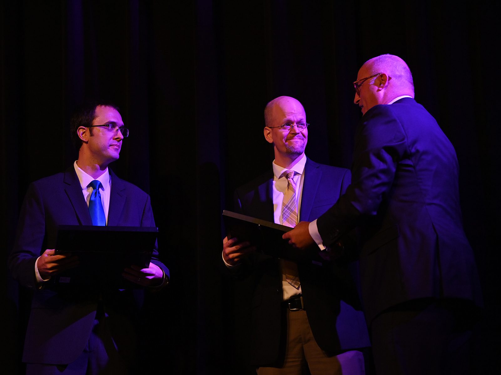 Tom Ascher ’08/’17 MBA, director of human resources, acknowledged milestone accomplishments of faculty and staff during the event, and Dr. Dan Sharda and Kyle Olney were honored as the 2021 Faculty Member of the Year and 2021 Staff Member of the Year.