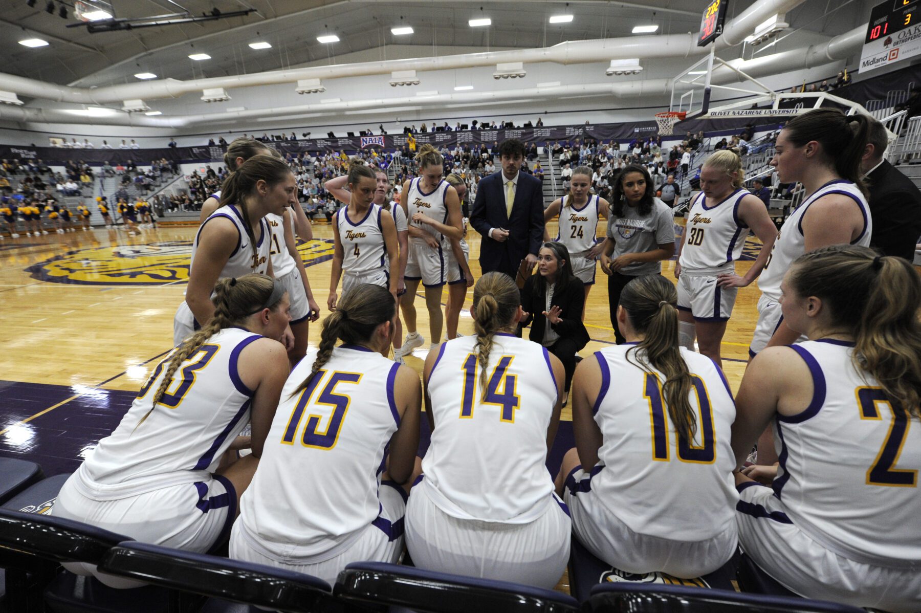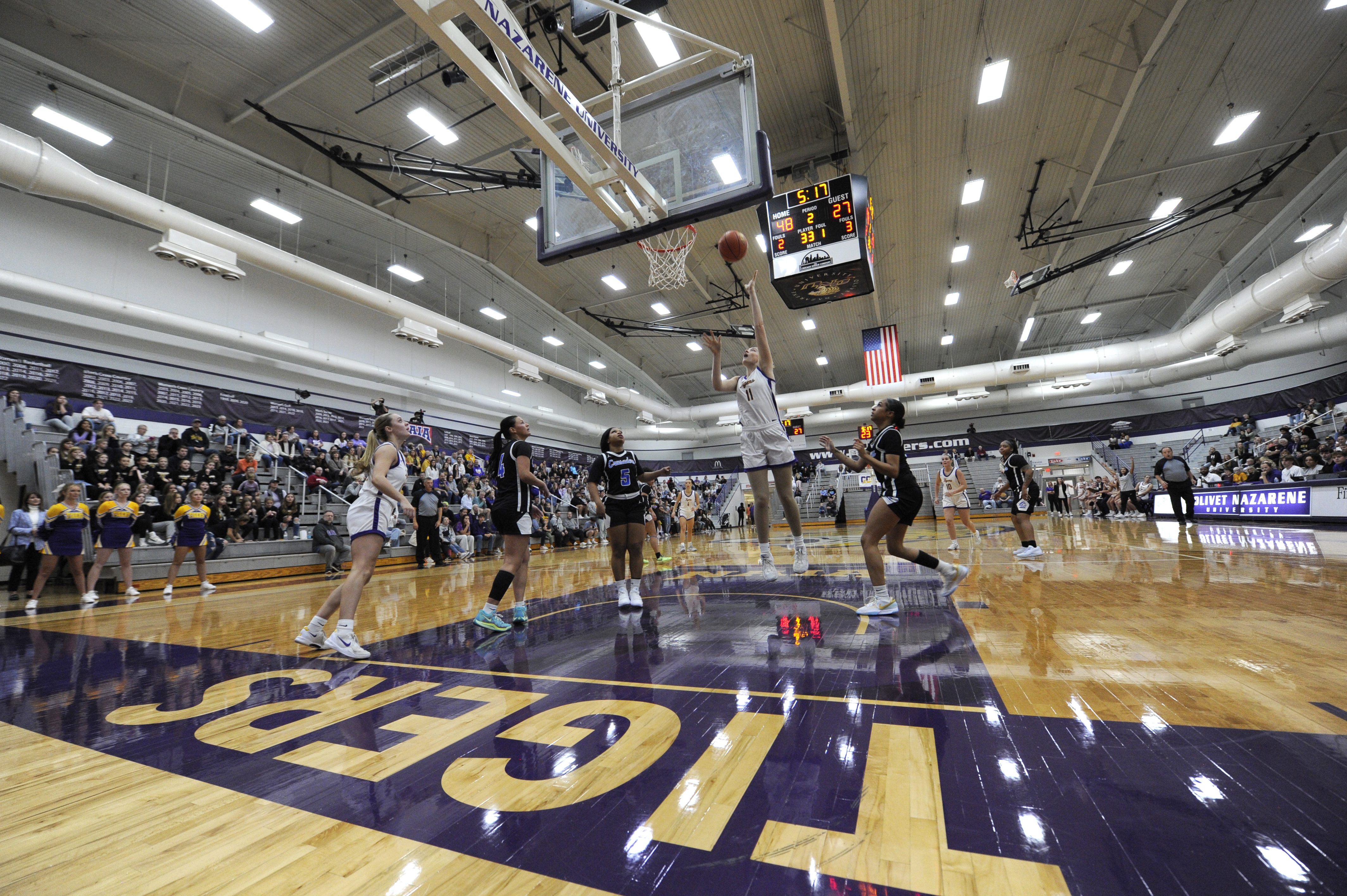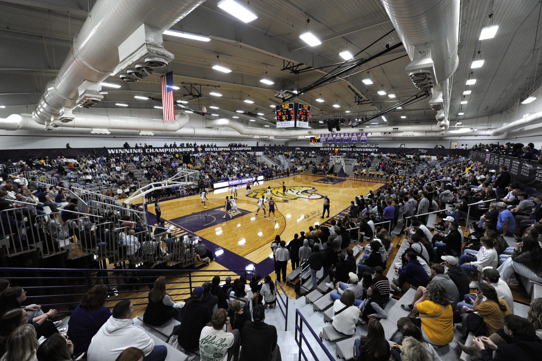 That evening, following the men’s and women’s basketball games, Olivet hosted a new Homecoming event, the 5th Quarter Fair. This event, filled with games; pizza from local vendors like Chicago Dough, Monical’s and Aurelio’s; and Olivet’s first-ever 50-foot ice cream bar, provided late-night fun for all ages.