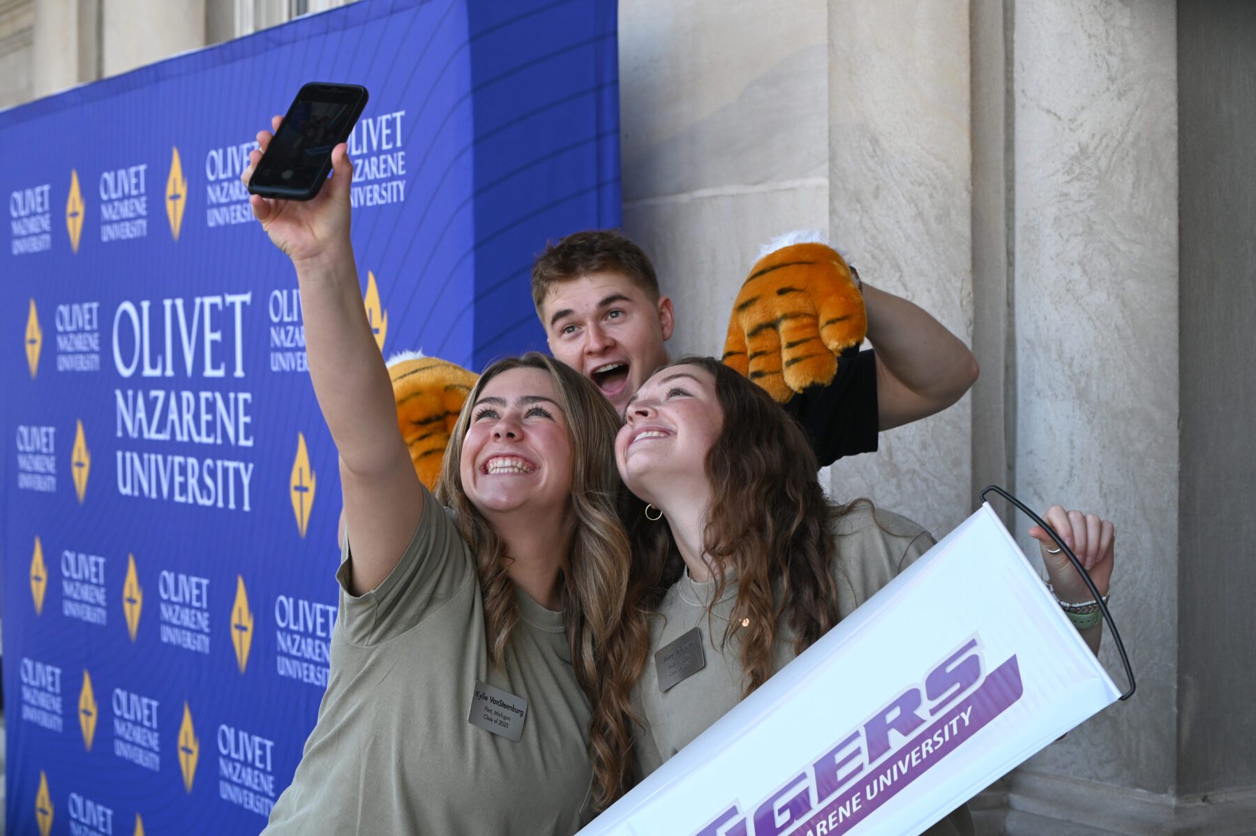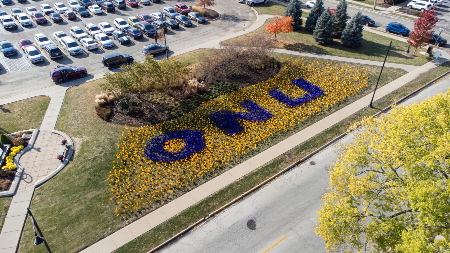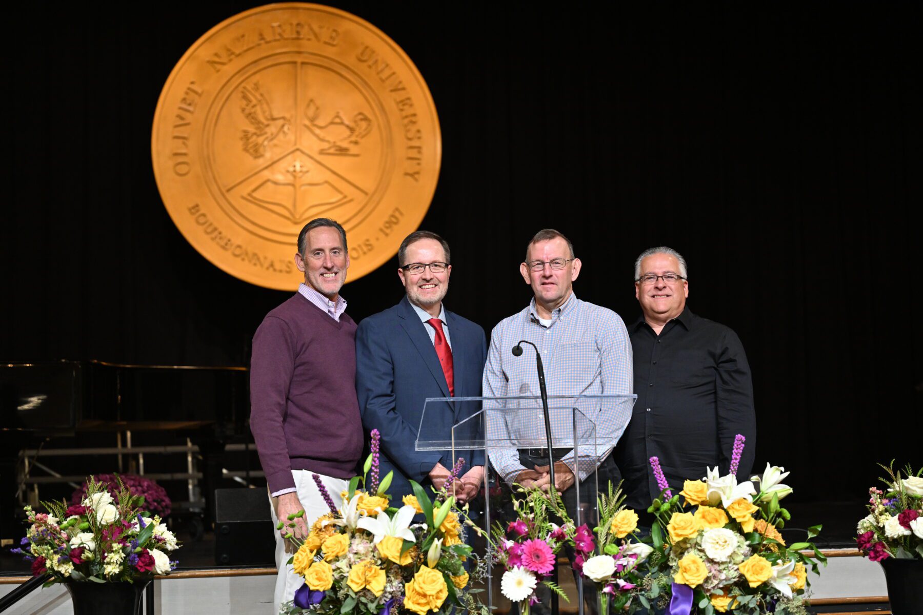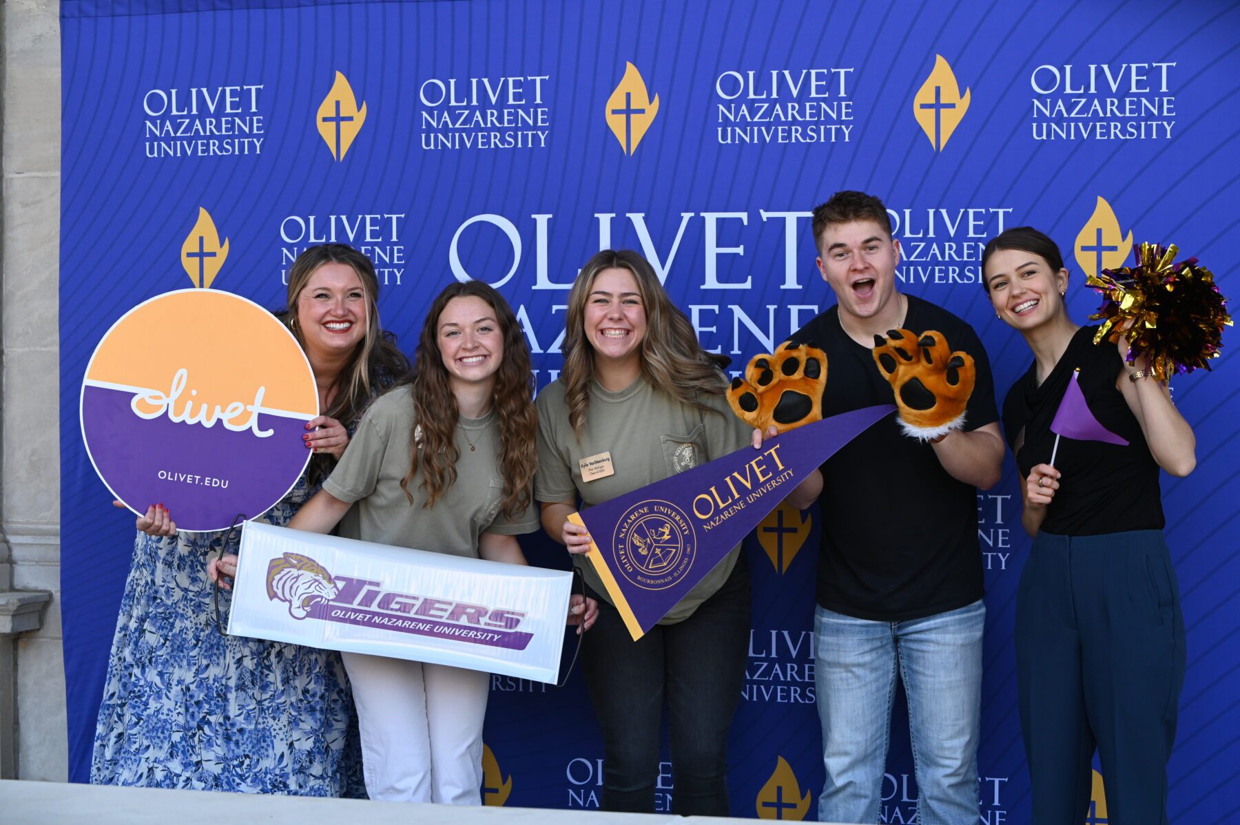 Following the service, guests were greeted by nearly 6,000 purple and gold flags on the Hawkins Centennial Chapel lawn. The purple flags, creating the letters ONU, represented the Olivet student population. Surrounding them were over 3,000 gold flags representing alumni, family and friends who made a gift in support of athletics, scholarships or academics. In total, there was one gift for every student.