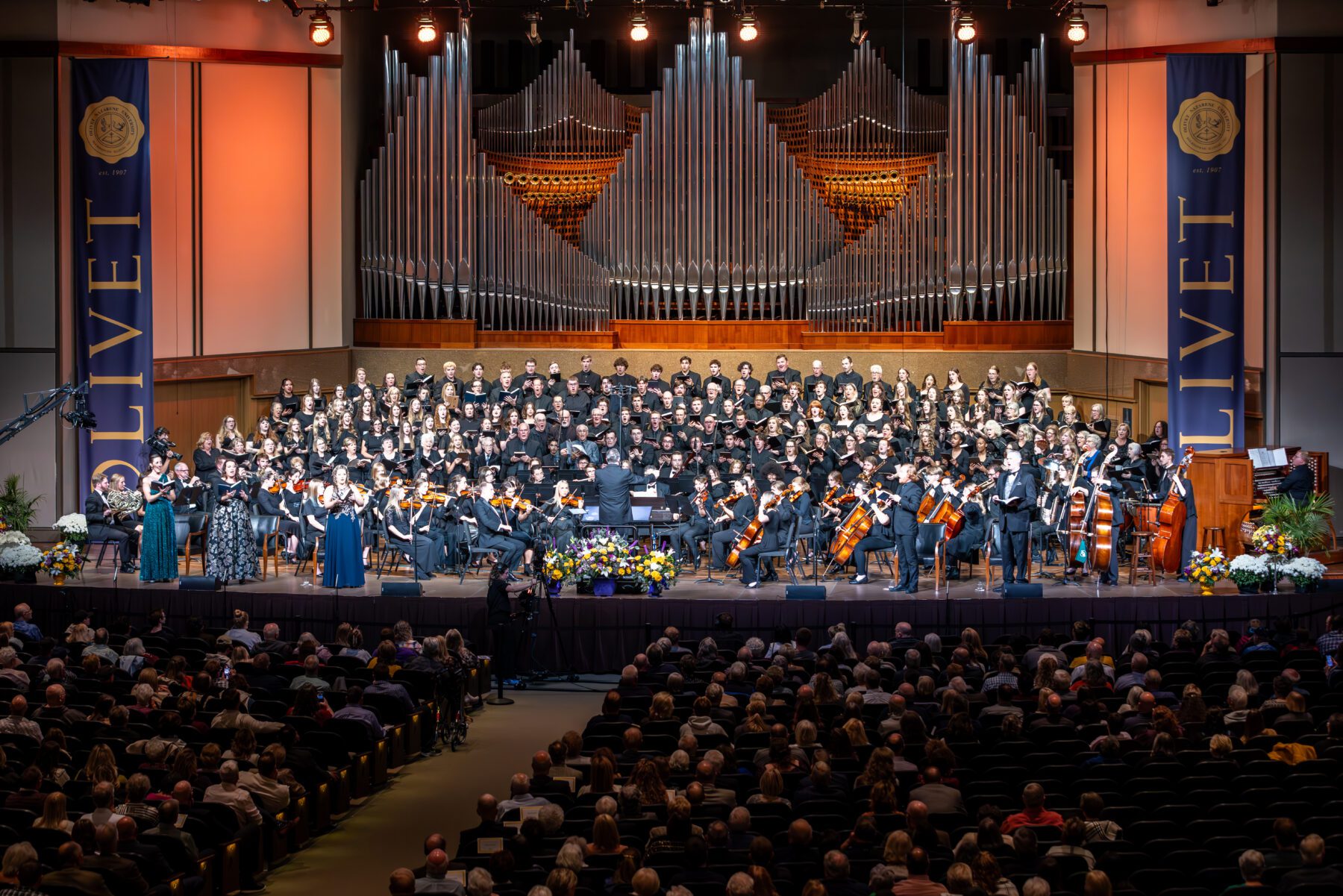 Saturday evening, Olivet’s School of Music proudly presented Messiah: The Reunion Concert. This year’s production welcomed back alumni School of Music ensemble members to join student musicians and vocalists for a memorable performance. Also, throughout the weekend, there were several opportunities to take in other athletic events, shows at the Strickler Planetarium and the fall play, 33 Variations.