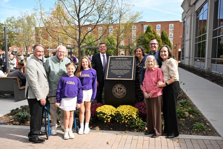 Following the service, the festivities were moved to the center of campus for the dedication of the new Allen Plaza – an expansion of the Decker Quad named in honor of Drs. Brian and Lynda Allen. This space, intentionally created for hospitality and community, was already providing meaningful moments throughout the weekend for many from the Student Spirit Day pop-up, the ONU marching band concert, coffee conversations and catch-ups and more.