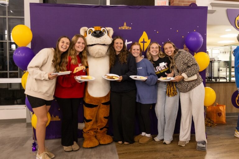 The weekends festivities kicked off Thursday night with the Alumni Board serving a late-night breakfast treat to the student body in Ludwig Center at the Throwback Thursday Student Pancake Feed.
