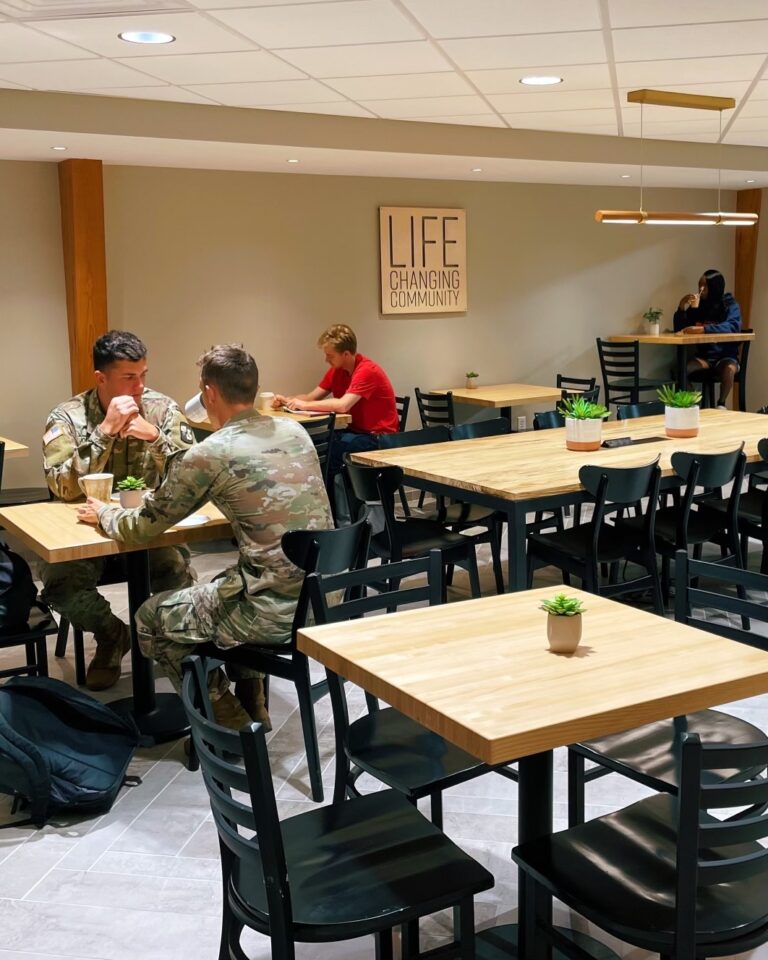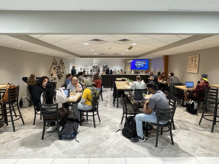 From its inception, College Church has had a special relationship with Olivet Nazarene University. Since its first service in the basement of Burke Administration Building in the 1940’s, College Church has been a vital part of Olivet’s community and ethos. While it has long been a cornerstone for Olivet students on Sundays, College Church now plays a more frequent, daily role in their everyday lives. In addition to providing connection groups in homes, trips to Chicago, and countless ministry opportunities, College Church now hosts free coffee every weekday in its café.