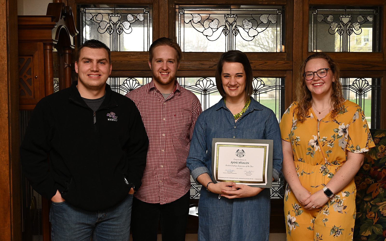 Anne was nominated by three of her student workers, Cammi Bittinger, Jesse Johnson and Timmy Miller. In her nomination letter, Cammi said, “Anne is truly the mouthpiece of our office. Her communication skills are exceptional. As a student worker, I have learned how to better communicate and do so in a professional manner. Although Anne is a natural public speaker and keeps our students informed and up to date, most of our communication happens over online platforms. As a former teacher, she can control a room of 50 college students like a champion. As a supervisor, she encourages and offers her student workers the ability to lead from their position. Because of this, those who work for her also grow as public speakers and communicators.”