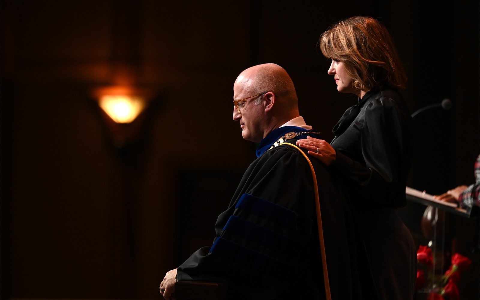 Friday morning, campus was abuzz with alumni and friends checking out departmental open houses, taking campus tours and filling in to attend the Presidential Inauguration of Olivet’s 13th president, Gregg A Chenoweth ’90, Ph.D. During the ceremony, Dr. Chenoweth was installed by Dr. Ron Blake, chair of the Board of Trustees and a covenant litany was read by representatives of Olivet constituents.