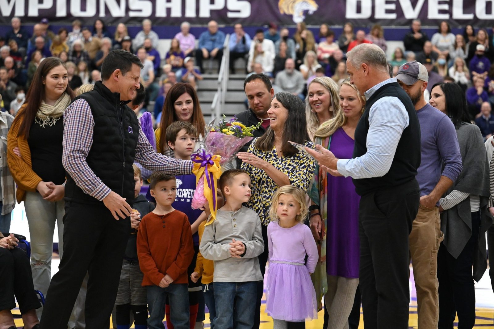 In the afternoon, the quad was full of students in purple & gold, enjoying food trucks and outdoor games. Following the women’s and men’s basketball victories and the official dedication of McHie Arena’s court to the late Ralph “Tres” Hodge, the night concluded with the Taste of Olivet dessert reception in Chalfant Hall.