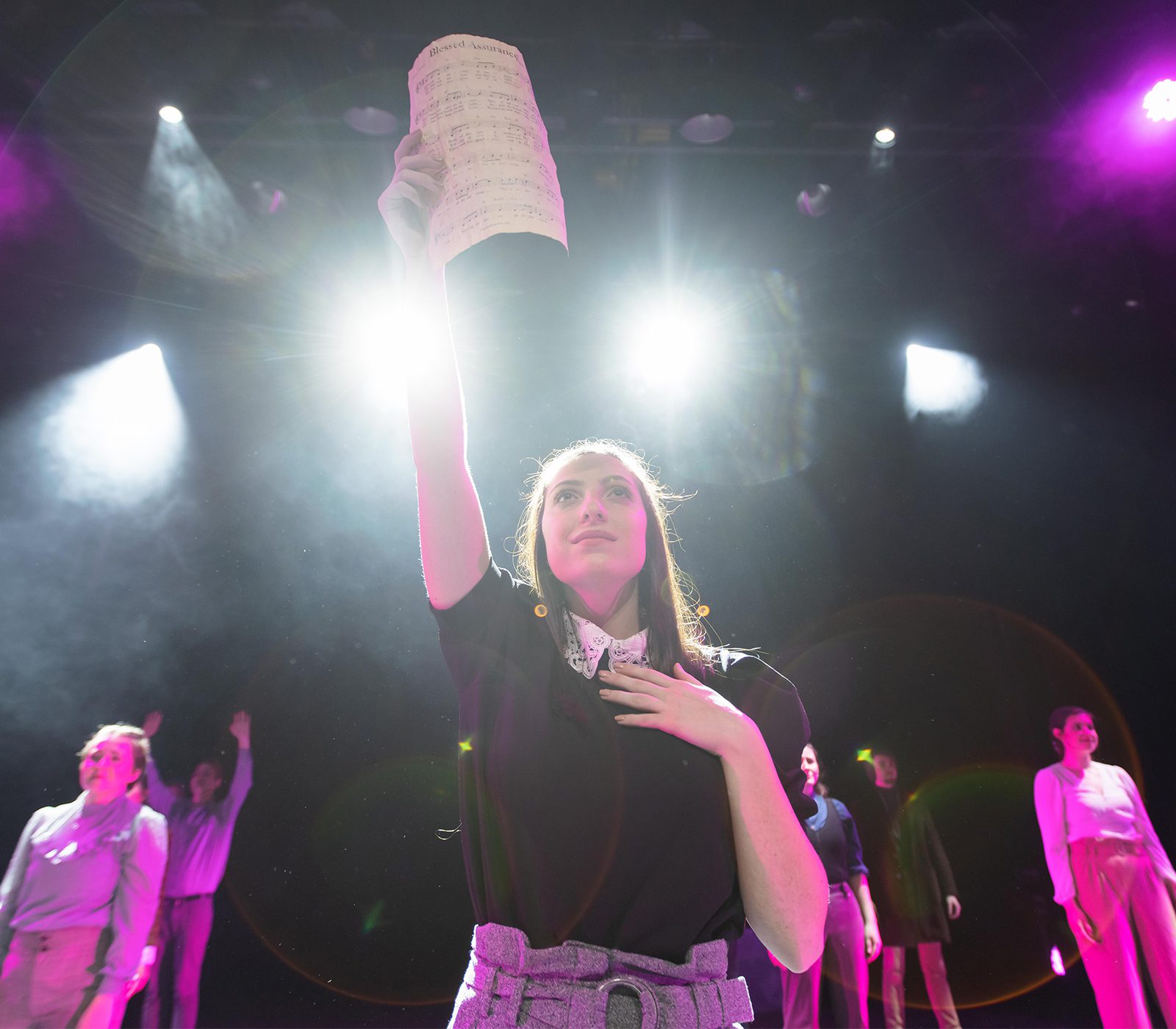 With the support of Dr. Heather McLaughlin, chair of the Department of Communication, Prof. Sarver began the creative process of fleshing out story ideas with at creative team that initially included graduate assistant Helen Berdebes ’19/’21 MBA and choreographer Kelsie Davis ’19. The women wanted to modernize a true story with songs that existed in the public domain. The life of Fanny Crosby, the blind hymnist who wrote “Blessed Assurance” quickly came to mind.