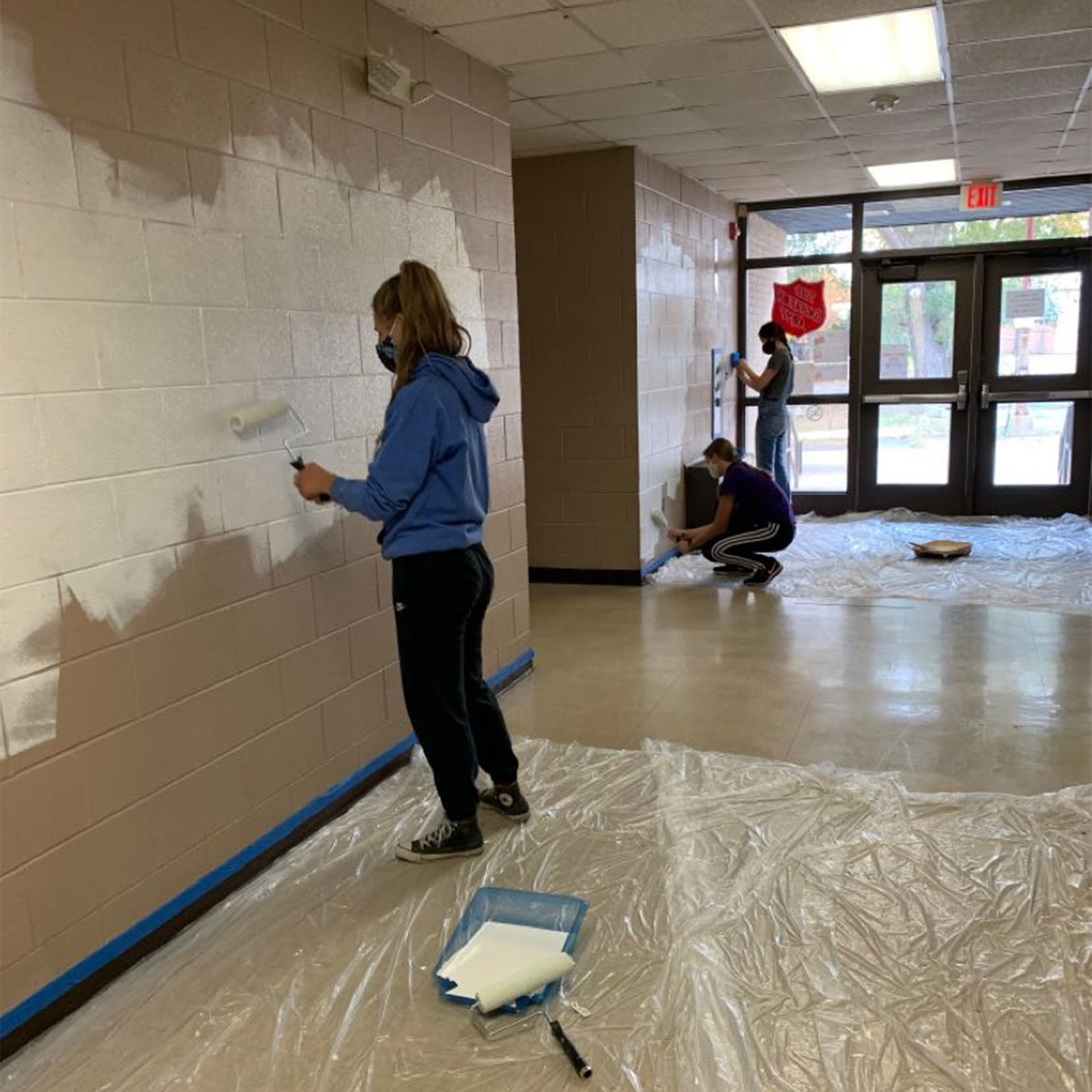 Co-leader for Habitat for Humanity, junior Kaylie Salopek, helped to organize the initiative. “The Salvation Army is such an amazing ministry that God has been using especially during this time,” she says. “It’s been a blessing to get to know their staff and help bring their vision for the space to life.”