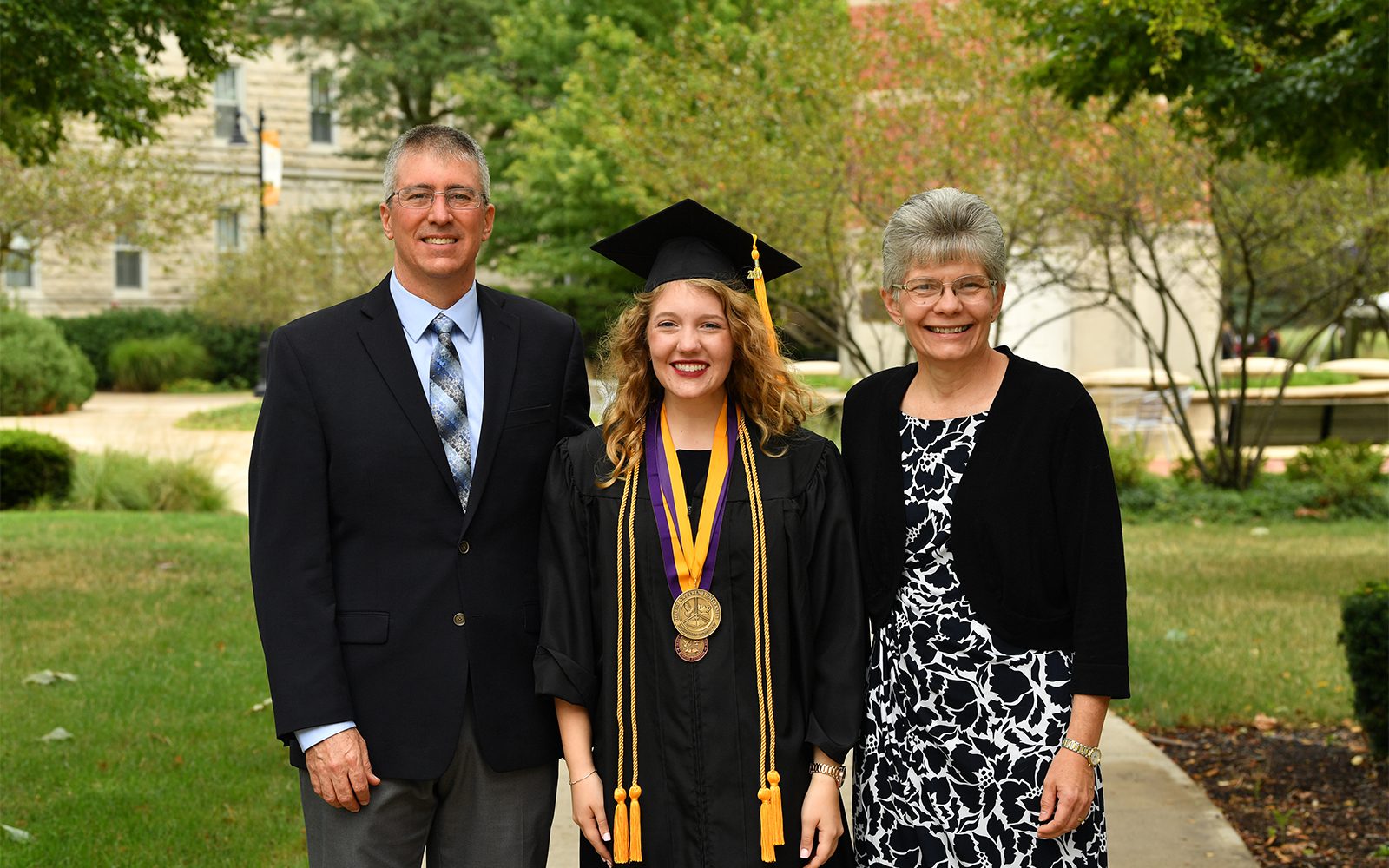 On September 8, 2020, University President, Dr. John C. Bowling hosted a small ceremony in the President’s conference room in the Burke Administration building to recognize Erin Olson and Dakota Mellish, respective recipients of the Sloan Crawford and Milner Awards. Erin and Dakota celebrated the achievement with their families and members of the President’s Cabinet.