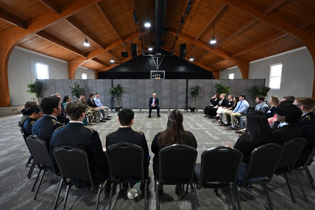 Following chapel, Pence joined 30 students from the ONU Political Science Department and ROTC program for a casual discussion over coffee in the College Church Christian Life Center. This session provided students with the opportunity to reflect on his chapel message and ask questions as they prepare for lives in public service. READ THE STORY