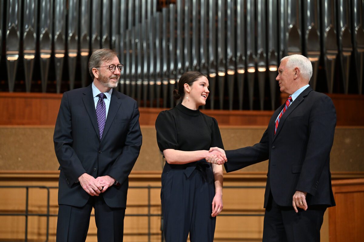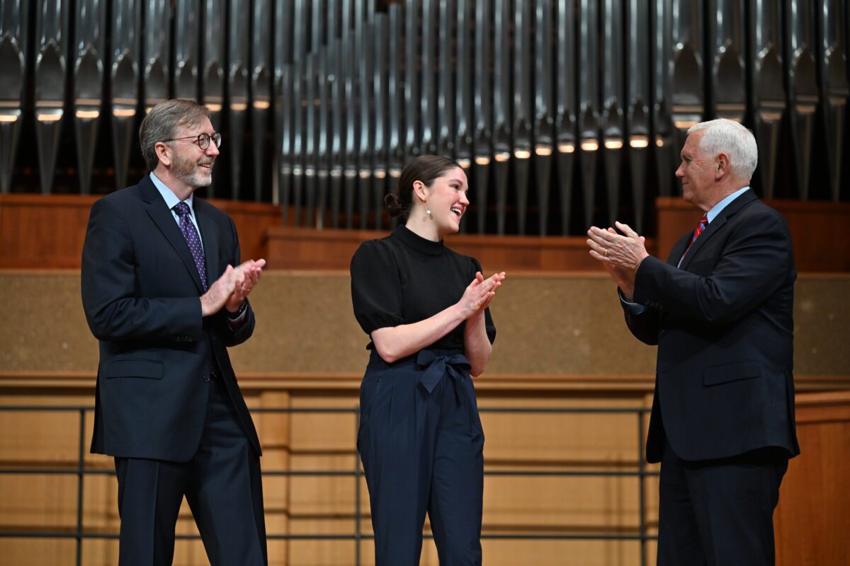 Reflecting on Olivet’s mission, Pence remarked, “Olivet is known as a principled Christian university around the country, and I commend you all for that.”