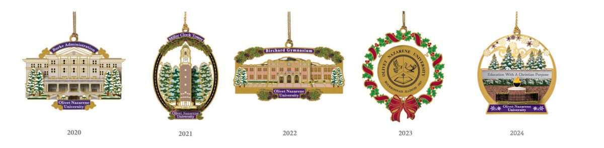 Order the 2024 ornament today with a new $25 donation or a previous year ornament for a $20 donation. You will receive a $35 giving receipt and your donation will go to The Olivet Fund. Please call the Alumni Office with any questions, 815-939-5258.